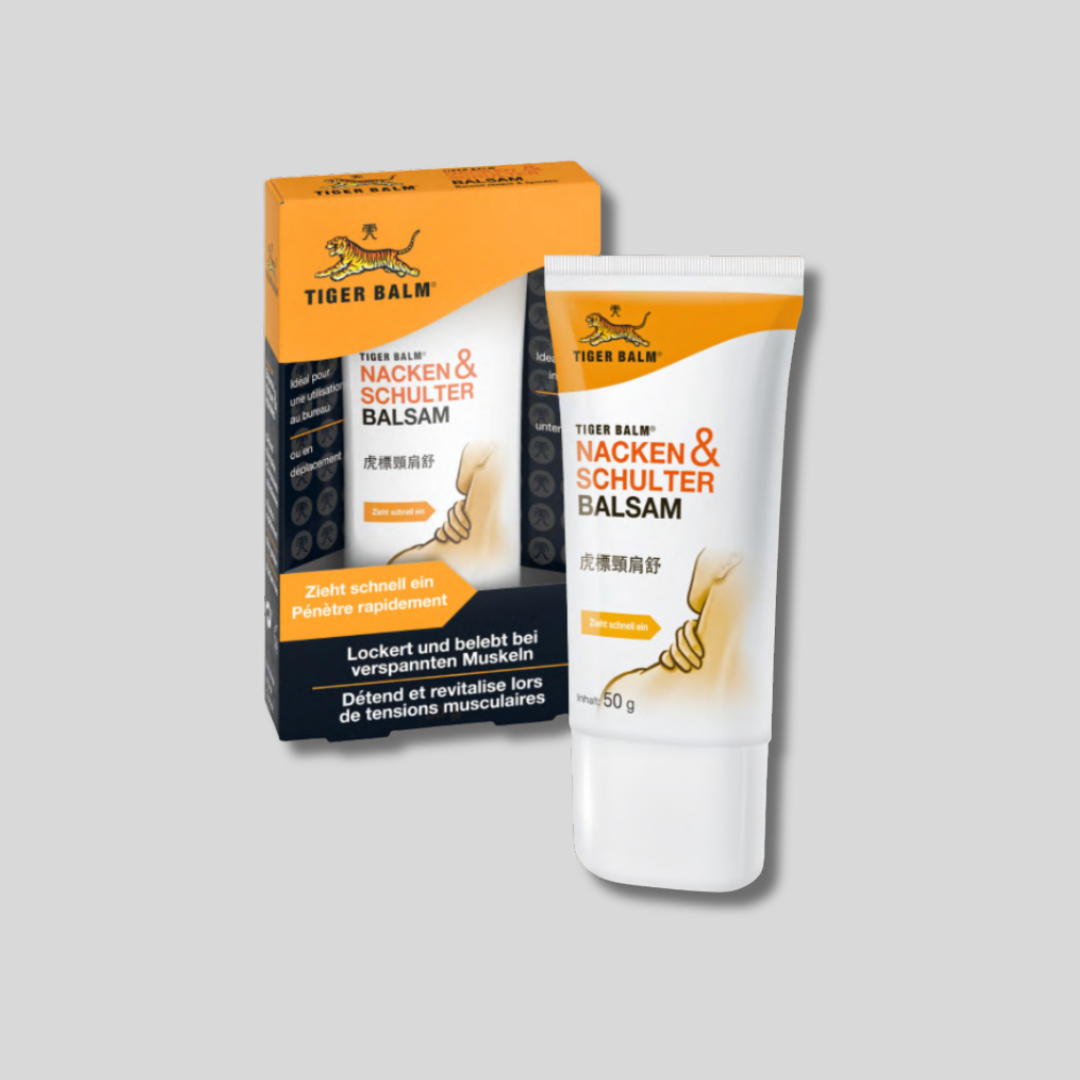 Der Tiger Balm Nacken- & Schulter Balsam ist ein moderner Klassiker, wenn es um wohltuende Entspannung geht. Die fein abgestimmte Formel wirkt lockernd und wärmend, hilft Spannungen zu lösen und sorgt für ein angenehm leichtes Körpergefühl.